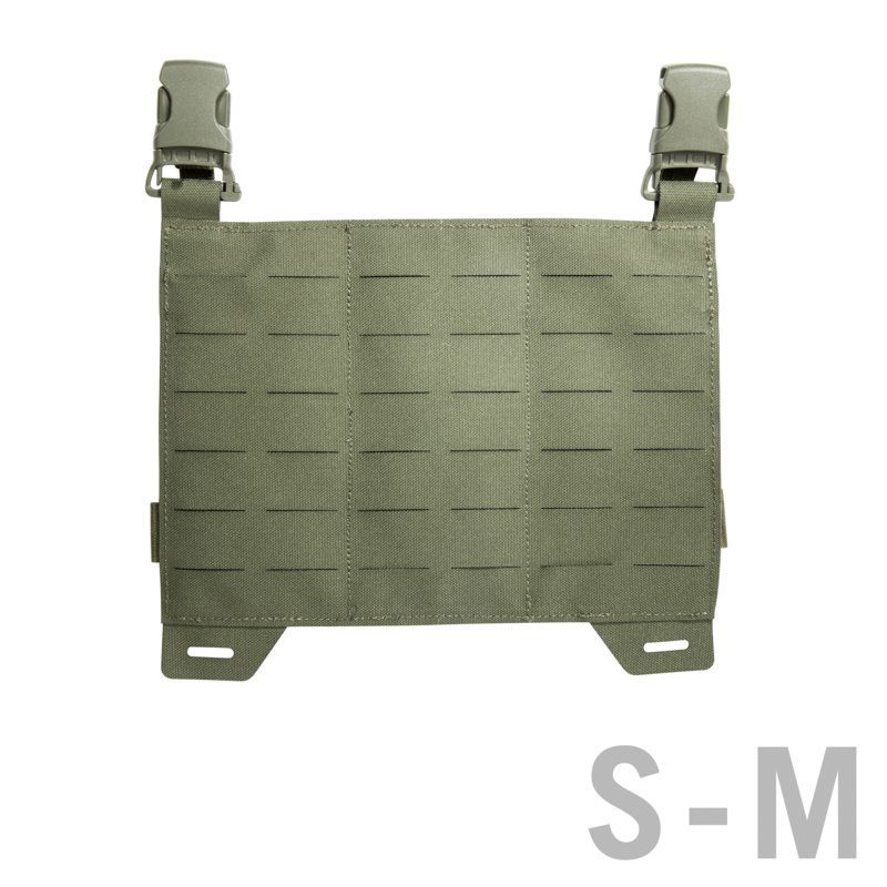 Statt den Plattenträger mit Pouches an den Frontteil zu konfigurieren, bietet die Nutzung eines Front-Panels wesentlich mehr individuelle Möglichkeiten und mehr Flexibilität an. So kann der Plattenträger bei System- oder Waffenwechsel mit nur 2 Klicks und Klett das Panel getauscht oder auch zum Beispiel an einem Rucksack angebracht werden. So kann bei dem Wechsel innerhalb eines Trups z. B. MGI und MGII